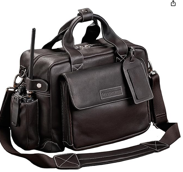 I exclusively use this bag myself. After trying several flight bags, I ended up staying with this one. It is a backpack style bag with padding in the back to make it nice and soft when wearing. It is premium leather with a hard bottom so that if you put it on the ground, dry or wet, it protects the bag from moisture, dirt, or rocks. I love that it has so many compartments and pockets which helps me a ton when it comes to stay organized. It has a dedicated pouch on the side to hold a handheld radio, a feature which I appreciate much given I broke one handheld in the past. It has a soft pouch for your sunglasses, and a velcro hook to hang your headset inside the bag. In the most rear, it has two slide pouches for a laptop, iPad, or other electronics which are kept separate from all the other stuff in the front. This bag is not cheap by any means, however, it is exclusively designed for general aviation pilots and packs so much features that are useful. Highly recommended.